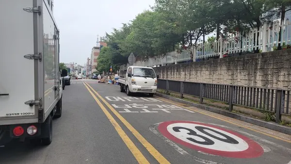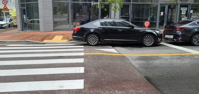 ►흰색 실선 : 흰색 실선인 경우에는 도로와 인도를 구분하는 선으로 주정차가 가능합니다.