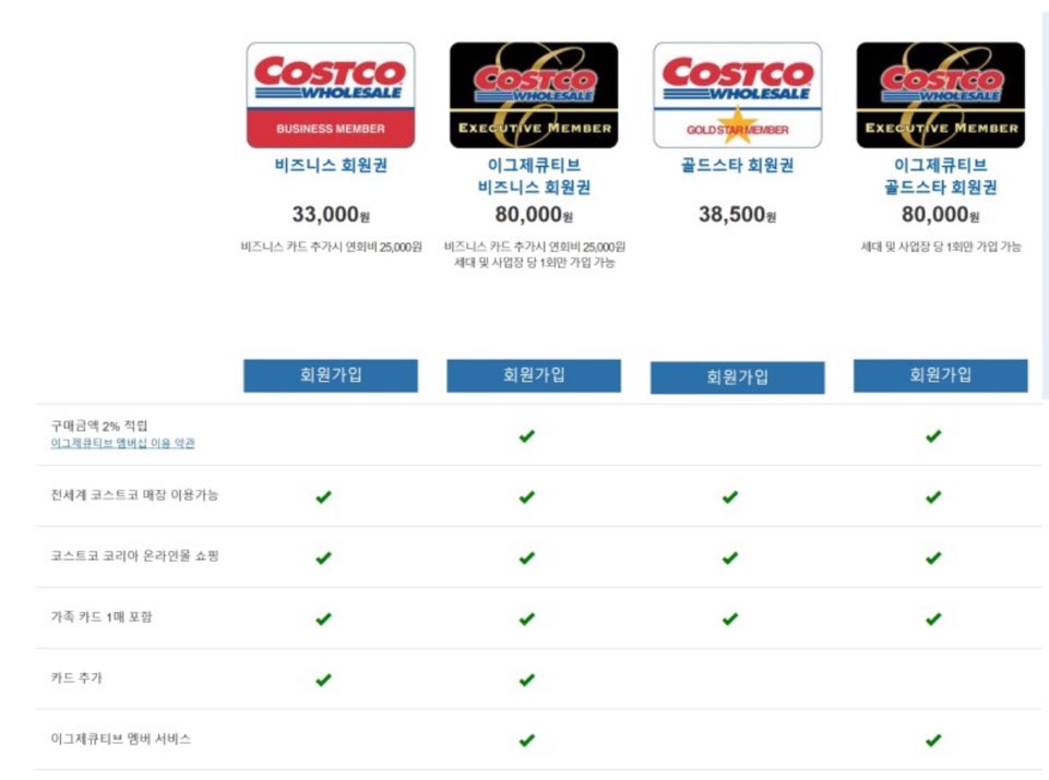 코스트코는 철저한 멤버십 이용가능한 마트입니다. 멤버십 종류는 두 가지 종류로 나누어집니다.